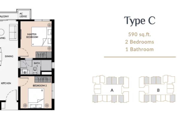 Laurel Residence is the perfect place to express your personal taste and lifestyle. Ranging from 1+1 to 3 bedrooms, every units had a practical layout that is flexible enough to accommodate your changing needs. Sited on 2.10 acres of prime land, the two-47 storey features 630 lifestyle serviced apartments on each tower ranging from 495 to 903 sq. ft.